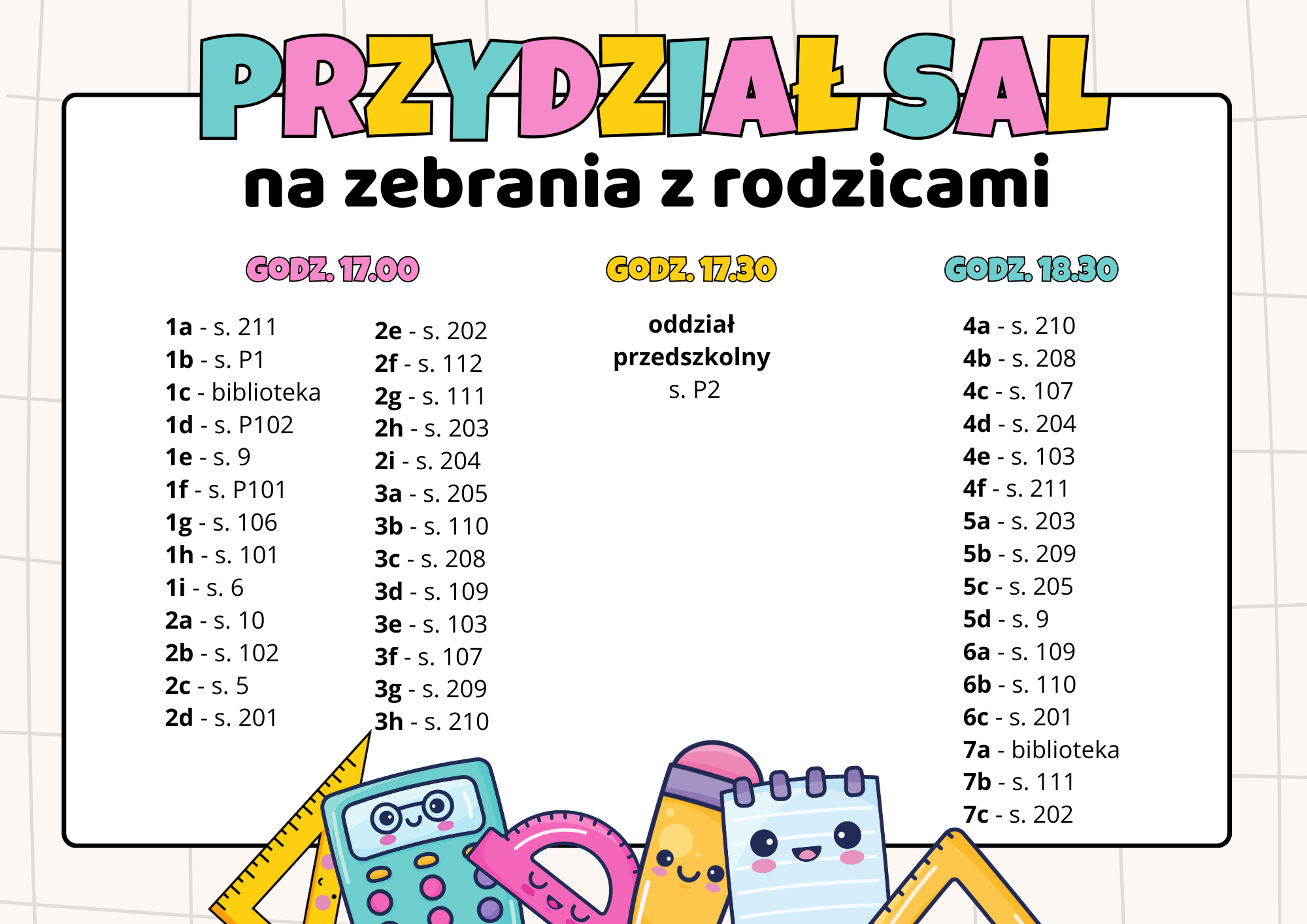 Zachęcamy do zapoznania się z przydziałem sal na zebranie.